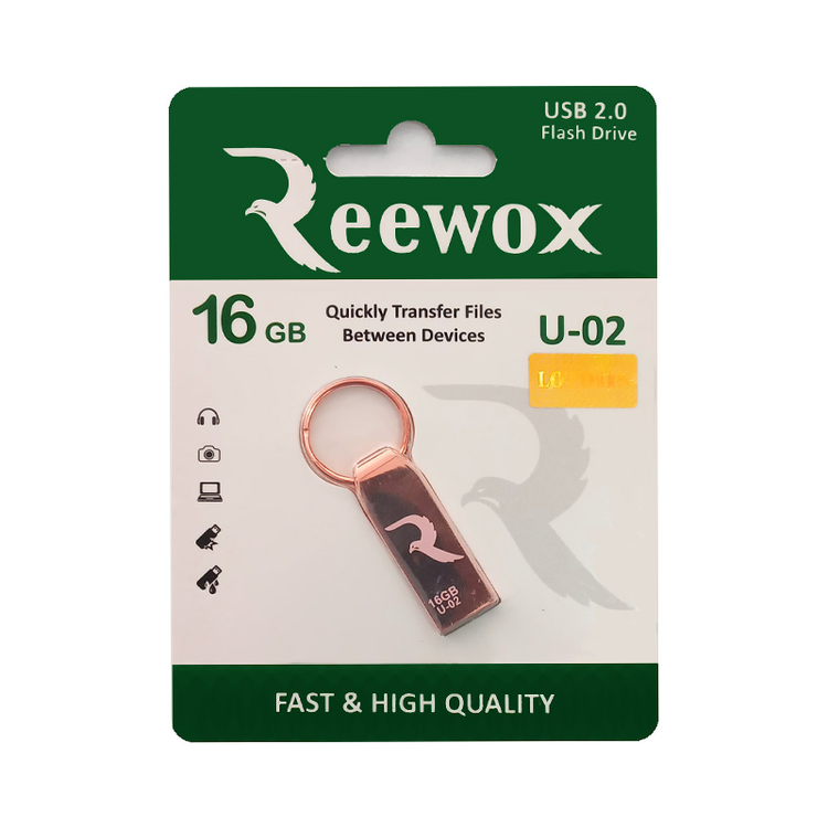 فلش 16 گیگ Reewox مدل U-02 با رابط USB2.0زیر مجموعه برند لوتوس در ایران با ظاهری زیبا، کوچک و کاربردی جهت ذخیره سازی و انتقال اطلاعات، دیتا ها، فیلم، بازی، موسیقی و نرم افزار ها … دارد.