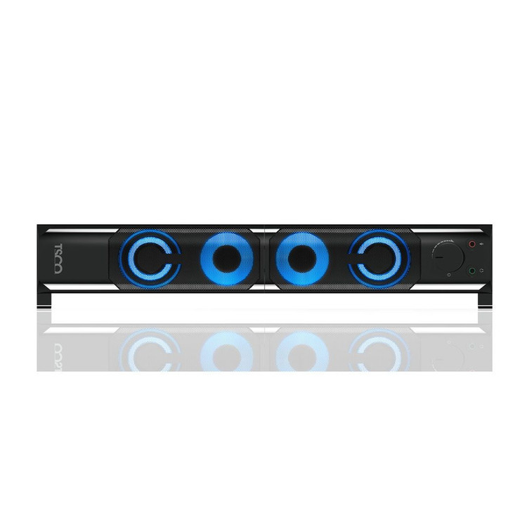 نوع طراحی TS 2075 به گونهای بوده که بتوانید آن را حمل کرده و با خود هرجایی که خواستید ببرید. ابعاد ساندبار برابر 195×73×70 میلیمتر و ابعاد ووفر نیز 190×85×73 میلیمتر است. وزن کلی این اسپیکرها نیز برابر 500.9 گرم بوده و به عنوان یک سیستم خانگی بسیار مناسب است. رنگبندی که برای این محصول از TS 2075 در نظر گرفته شده مشکی بوده و به زیبایی رنگ آبی LED را نمایش میدهد. طراحی این دو بلندگو برای زینت دادن به محیط خانه شما عالی خواهد بود. در بخش جلویی این اسپیکر یک پنل قرار دارد که برای زیاد و کم کردن صدا بوده و دو درگاه برای میکروفن و بلندگو از نوع AUX در نظر گرفته شده است. از سمت دیگر در پشت دستگاه نیز شاهد ووفر هستیم. در بخش اسپیکرها نیز LED آبی رنگ موجود است که با رقص نور RGB همراه است.