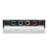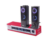 نوع طراحی TS 2075 به گونهای بوده که بتوانید آن را حمل کرده و با خود هرجایی که خواستید ببرید. ابعاد ساندبار برابر 195×73×70 میلیمتر و ابعاد ووفر نیز 190×85×73 میلیمتر است. وزن کلی این اسپیکرها نیز برابر 500.9 گرم بوده و به عنوان یک سیستم خانگی بسیار مناسب است. رنگبندی که برای این محصول از TS 2075 در نظر گرفته شده مشکی بوده و به زیبایی رنگ آبی LED را نمایش میدهد. طراحی این دو بلندگو برای زینت دادن به محیط خانه شما عالی خواهد بود. در بخش جلویی این اسپیکر یک پنل قرار دارد که برای زیاد و کم کردن صدا بوده و دو درگاه برای میکروفن و بلندگو از نوع AUX در نظر گرفته شده است. از سمت دیگر در پشت دستگاه نیز شاهد ووفر هستیم. در بخش اسپیکرها نیز LED آبی رنگ موجود است که با رقص نور RGB همراه است.