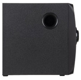 این دستگاه بهصورت سهتکه طرحی شده است و وزنی حدوداً برابر 3.2 کیلوگرم دارد. کلاس رنگی آن مشکی است. ابعاد اسپیکرهای ستهلایت حدود 100*90*160 میلیمتر و ابعاد سابووفرهای این اسپیکر حدود 160*270*265 میلیمتر است. اگر بادقت به ساب ووفر این اسپیکر دقت کنید 4 دکمه برای کنترل مدیا و یک پیچ جهت تنظیم صدا مشاهده میکنید.