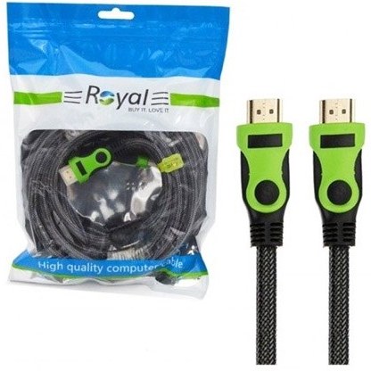 کابل HDMI شرکت رویال در متراژ و کیفیت های متفاوت مثل 4K و FULLHD روانه بازار شده است. این کابل HDMI شرکت رویال دارای 10 متر طول با ورژن 1.4 می باشد که تصاویر را با کیفیت FULLHD منتقل می کند که برای دوربین مداربسته و گیرنده دیجیتال و پروژکتور ها انتخاب مناسبی می باشد. از طرفی همین کابل شرکت رویال تا 30 متر نیز روانه بازار شده است که بدون نویز و افت کیفیت تصاویر را منتقل می کند. شایان ذکر است که این کابل از 15 هسته (14+1 رشته سیم) تشکیل شده است که تماما از مس می باشد.